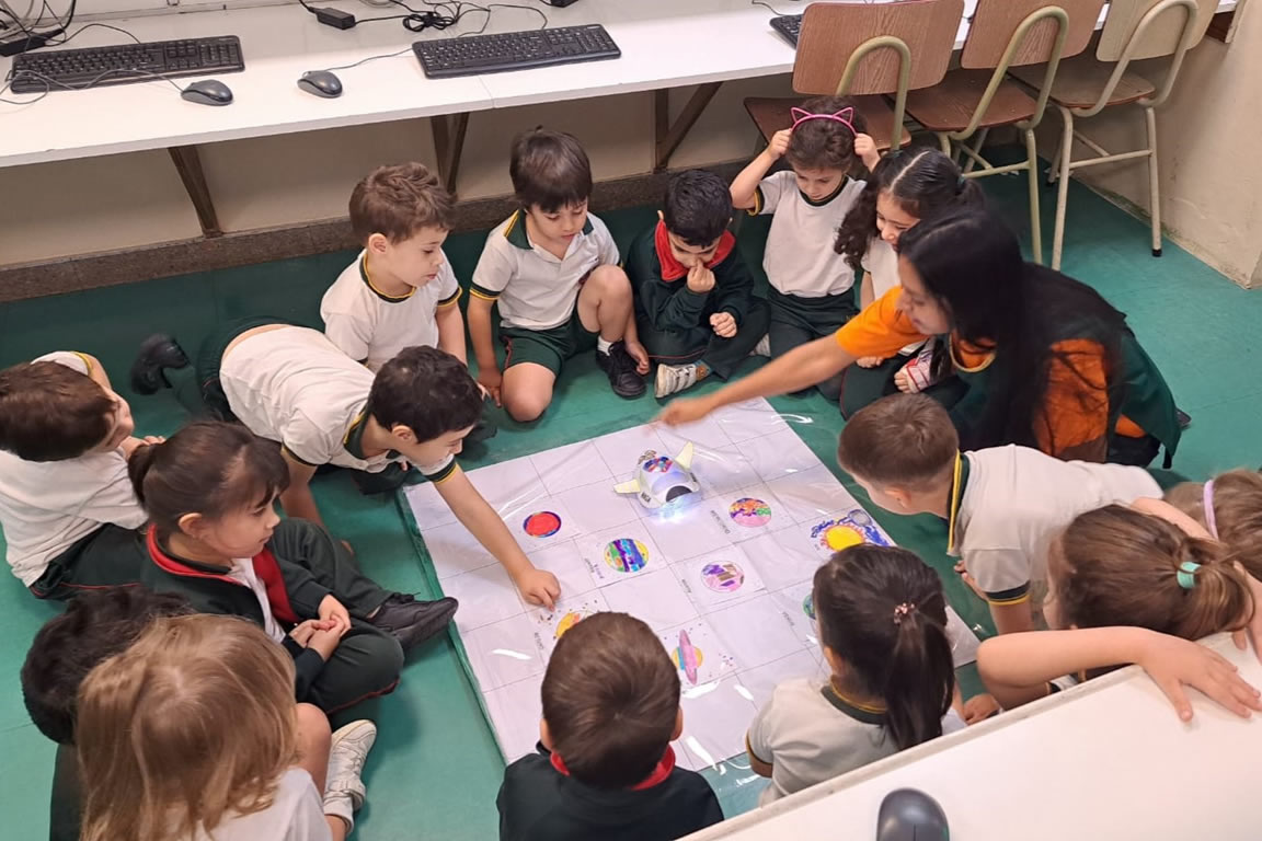Inicial: En nuestras salas de 4 y 5 años, los docentes diseñan actividades donde el contenido curricular se facilita a través de software educativos como graficadores y programas interactivos. Los alumnos exploran el mundo digital jugando y aprendiendo de manera divertida. Utilizan notebooks, tablets y robots educativos; ingresan al mundo de la programación por bloques.
