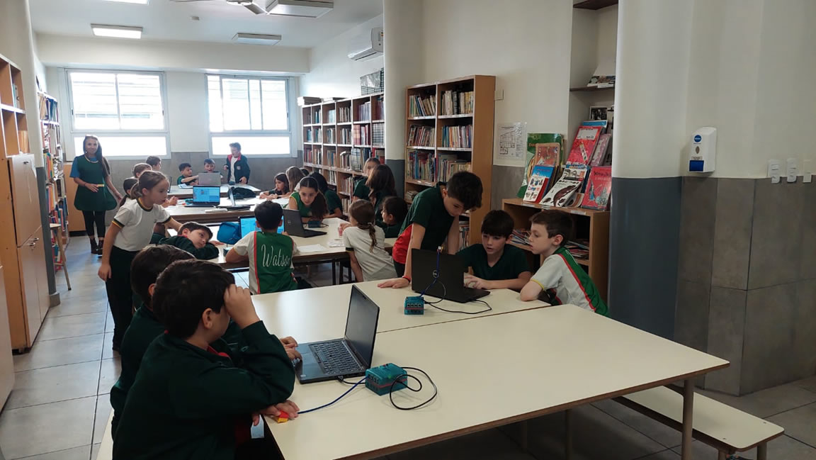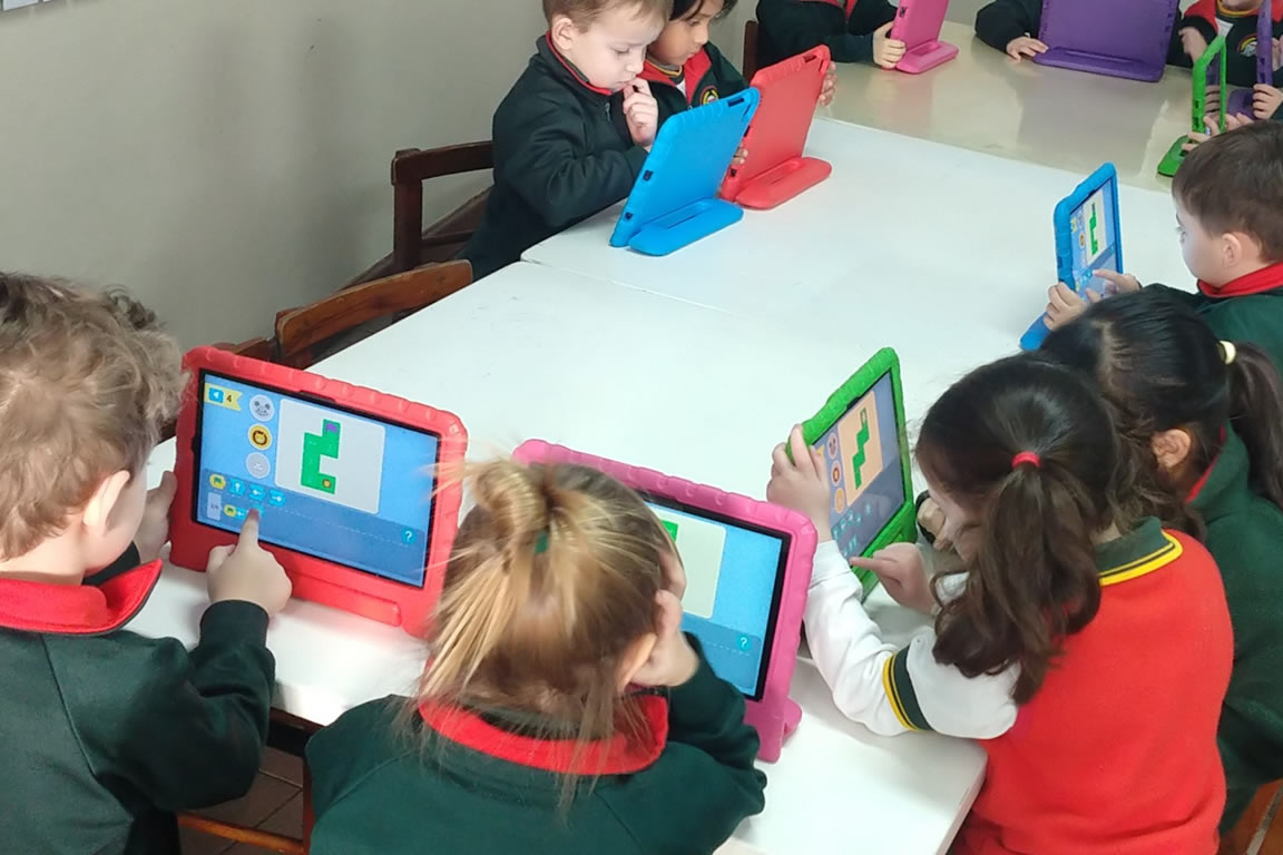 Inicial: En nuestras salas de 4 y 5 años, los docentes diseñan actividades donde el contenido curricular se facilita a través de software educativos como graficadores y programas interactivos. Los alumnos exploran el mundo digital jugando y aprendiendo de manera divertida. Utilizan notebooks, tablets y robots educativos; ingresan al mundo de la programación por bloques.